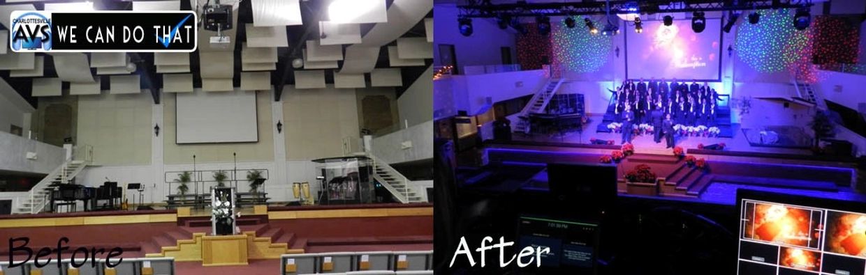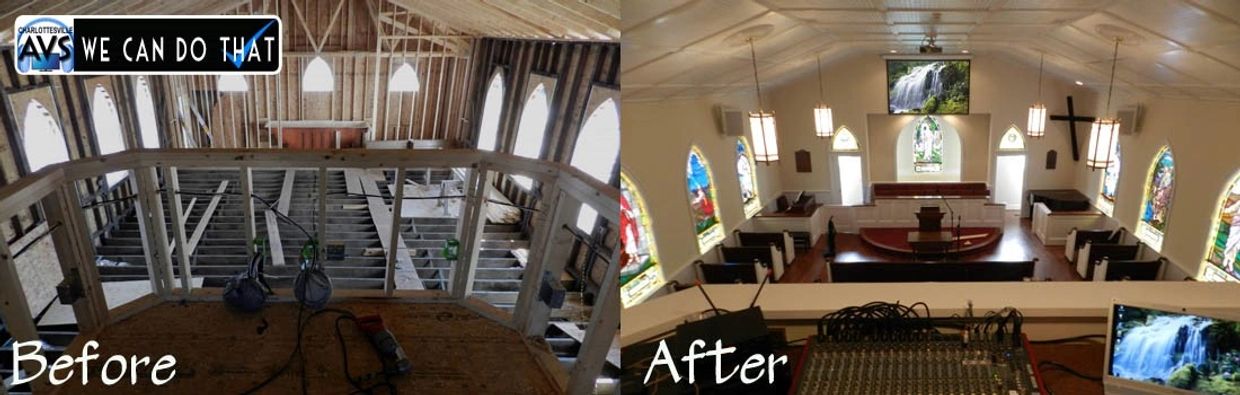 Ruckersville Baptist Church burned down in 2011. AVS helped them to rebuild in 2012. Community Loudspeakers , Allen & Heath Mixer. QSC Amps, Draper Screen & Hitachi Projector